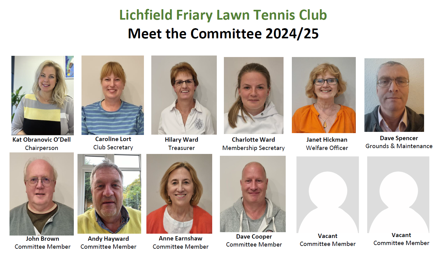 Our tennis committee manages the club’s operations for the benefit of our members. If you are interested in joining the committee, or if you have a particular skill you could offer the club, we would love to hear from you.